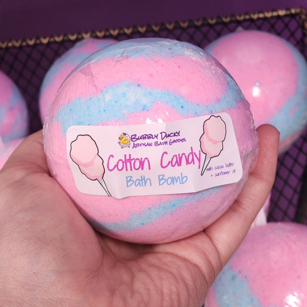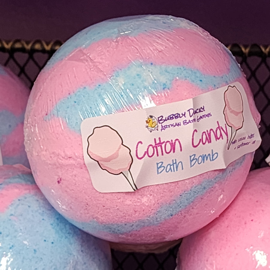 Indulge in a sweet treat with our "Cotton Candy" Mega Bath Bomb. Made with nourishing cocoa butter and sunflower oil, this half pound bomb will leave your skin feeling soft and hydrated. Delight your senses with the whimsical scent of cotton candy while enjoying the playful pink and blue colors. A bath time experience you won't want to miss!