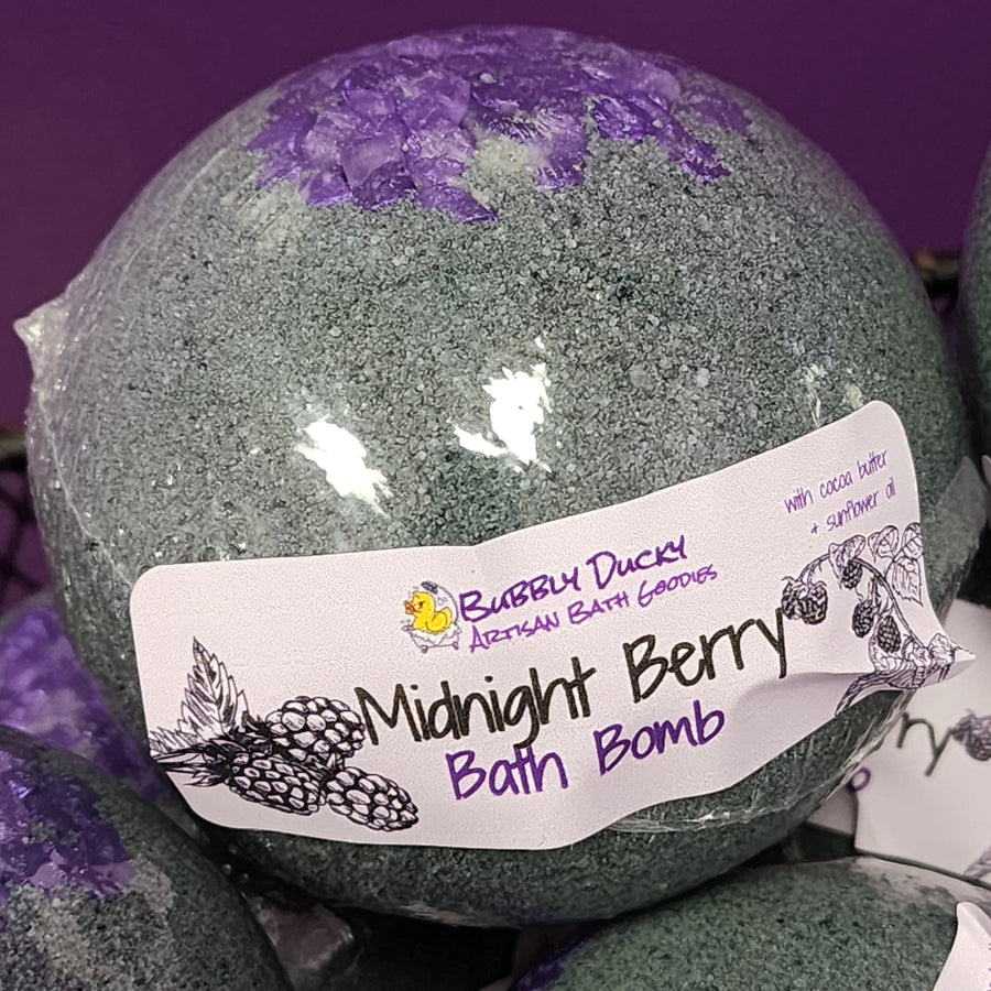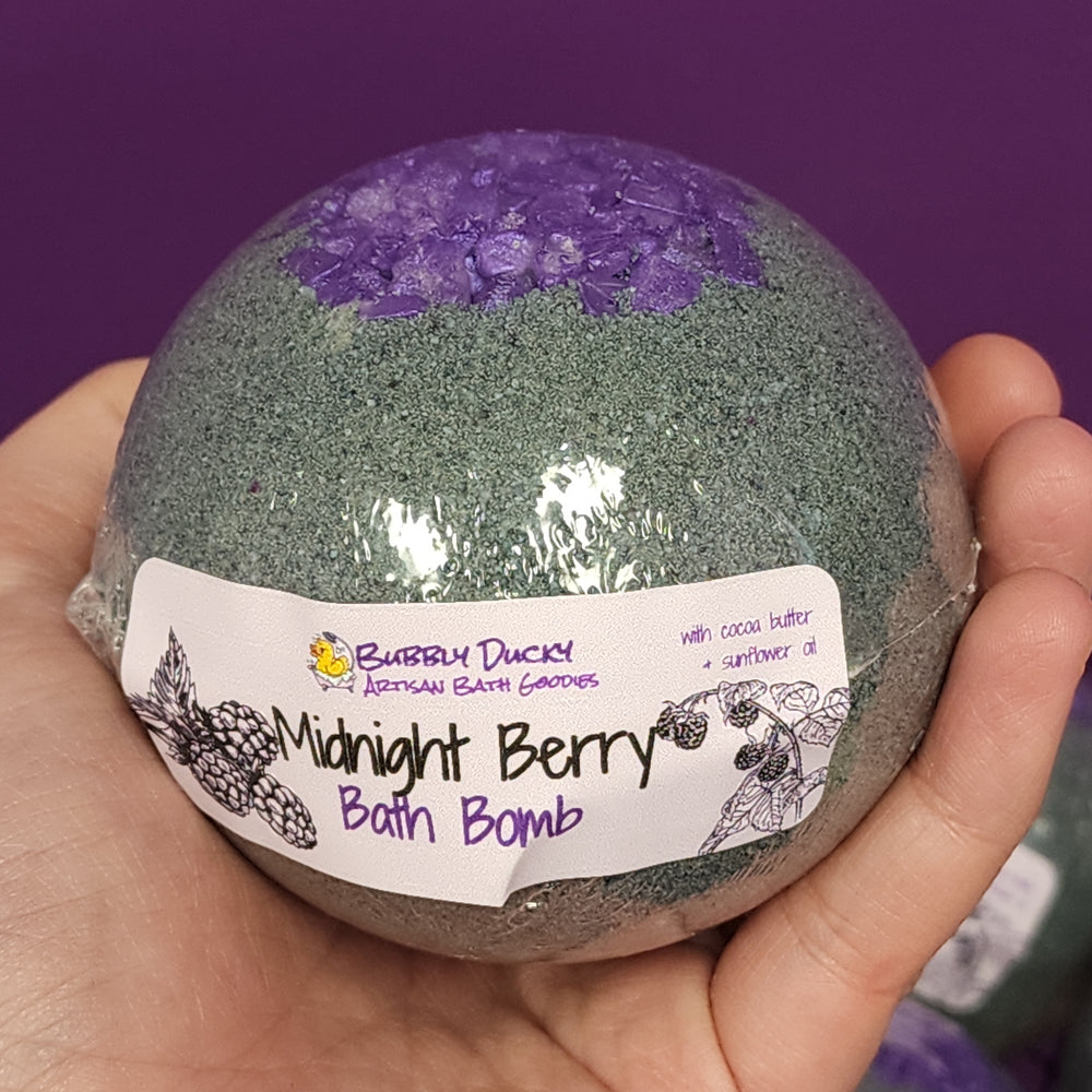 Bring some excitement to your bath time with our "Midnight Berry" Mega Bath Bomb! This big half-pound bomb will turn your bath water black and fill your bathroom with the delicious scent of black raspberry vanilla. Made with nourishing cocoa butter and sunflower oil for a luxurious experience. Get ready to soak in style!