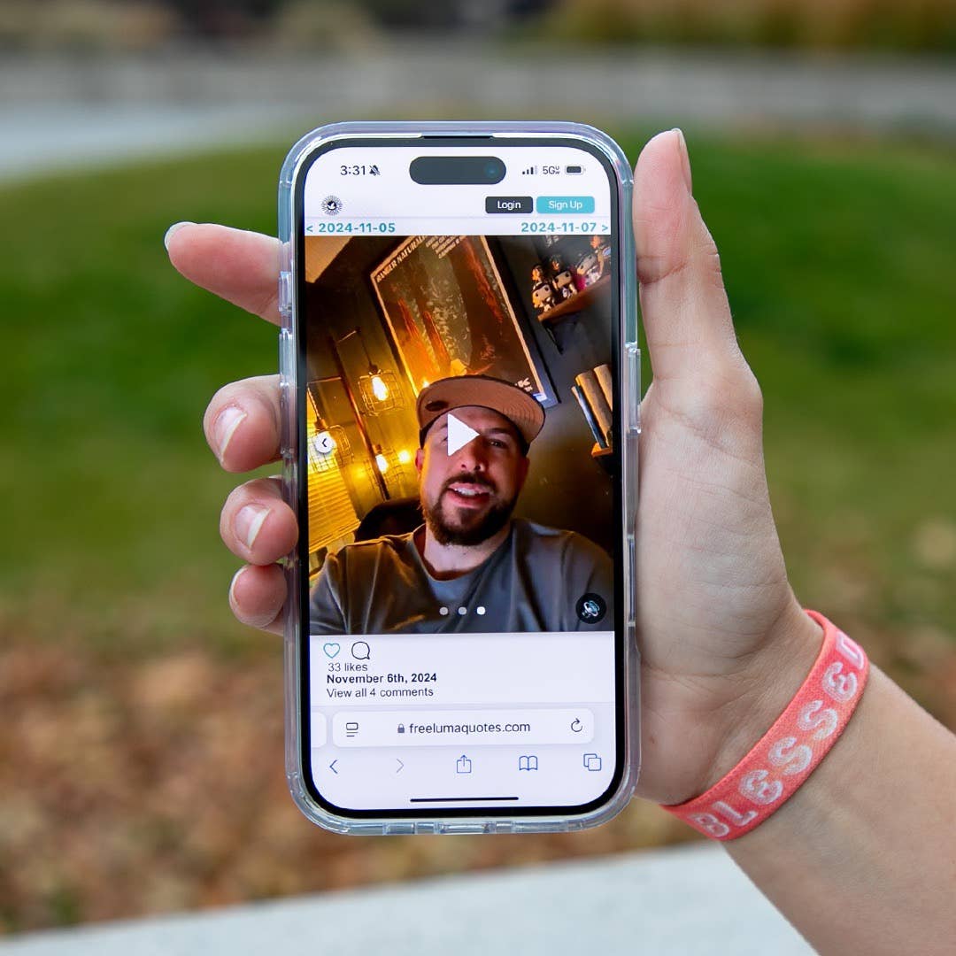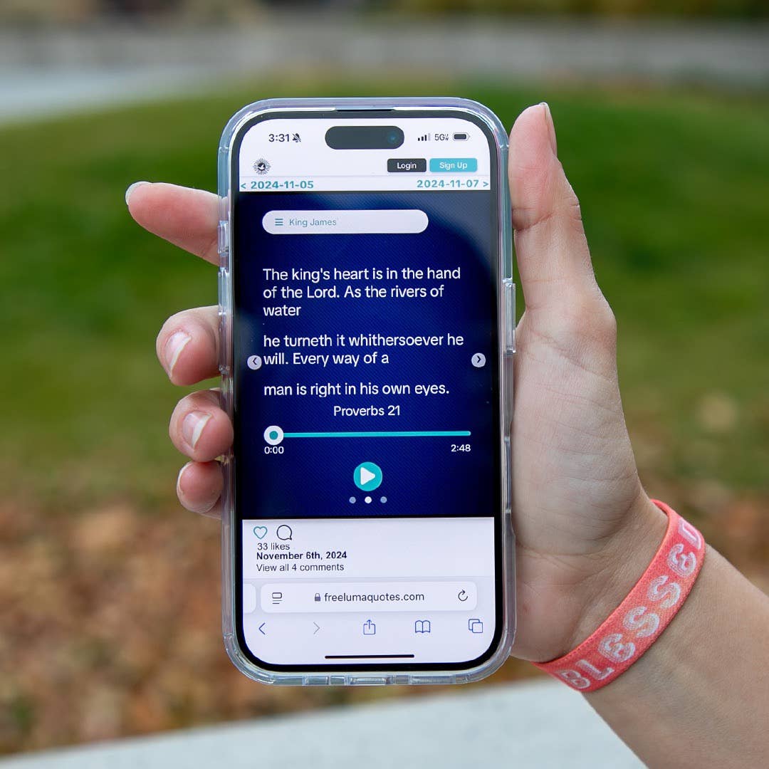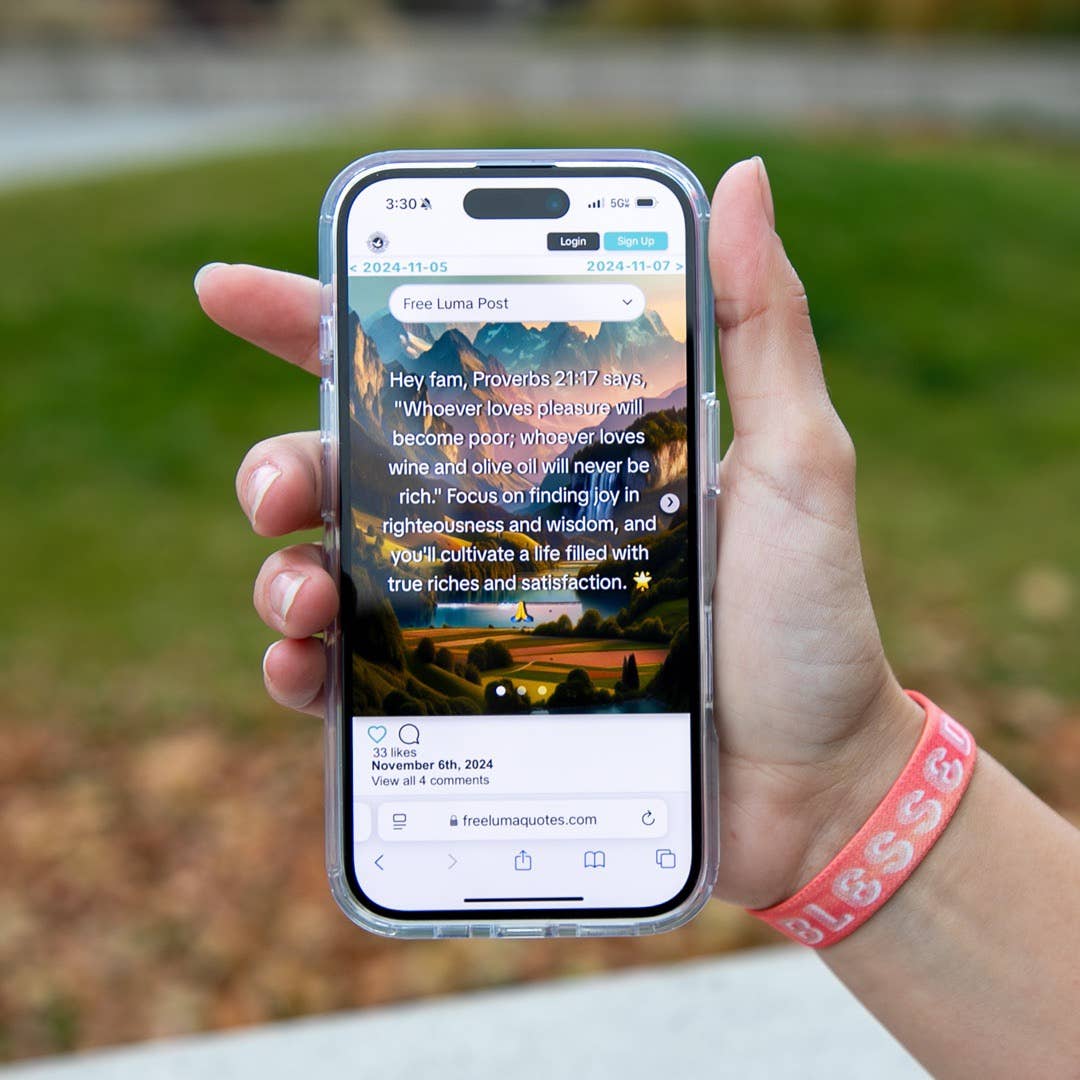 Find peace and guidance with our "Blessed" bracelet. This elegant piece serves as a daily reminder to stay connected with God and embrace the blessings in your life. More than just an accessory, it’s a spiritual tool to help you nurture your faith and find comfort each day. Simply place your smartphone on the Free Luma logo to receive your daily Christian-inspired message based on a new Bible verse each day, offering comfort and strength in your spiritual journey. • 100% waterproof • Tap your phone to the bracelet to load your daily message