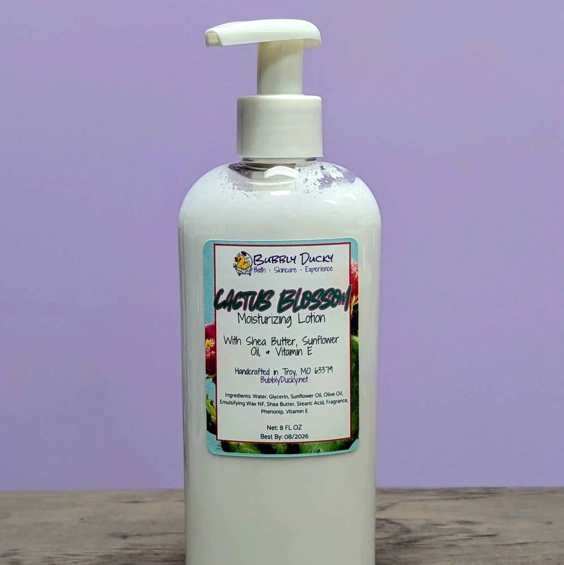 Fresh and lightly floral with a soft sweetness, Cactus Blossom is bright without being overpowering. Made with shea butter, sunflower oil, and vitamin E, this lotion hydrates the skin while maintaining a lightweight, non-greasy feel.