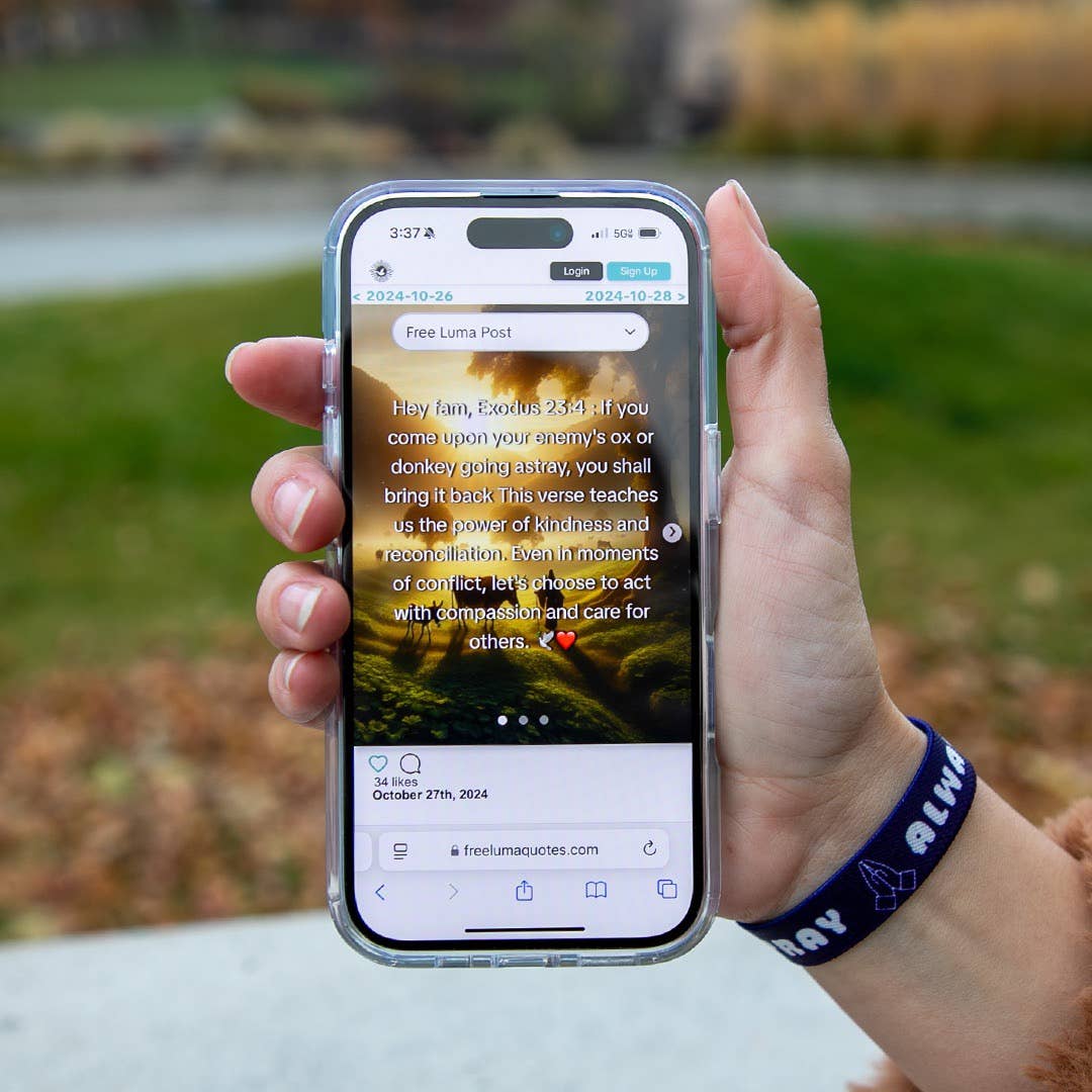 Find peace and guidance with our "Pray Always" bracelet. This elegant piece serves as a daily reminder to stay connected with God through prayer. More than just an accessory, it's a spiritual tool to help you nurture your faith. Simply place your smartphone on the Free Luma logo to receive your daily Christian-inspired message based on a new Bible verse each day, offering comfort and strength in your spiritual journey. • 100% waterproof • Tap your phone to the bracelet to load your daily message
